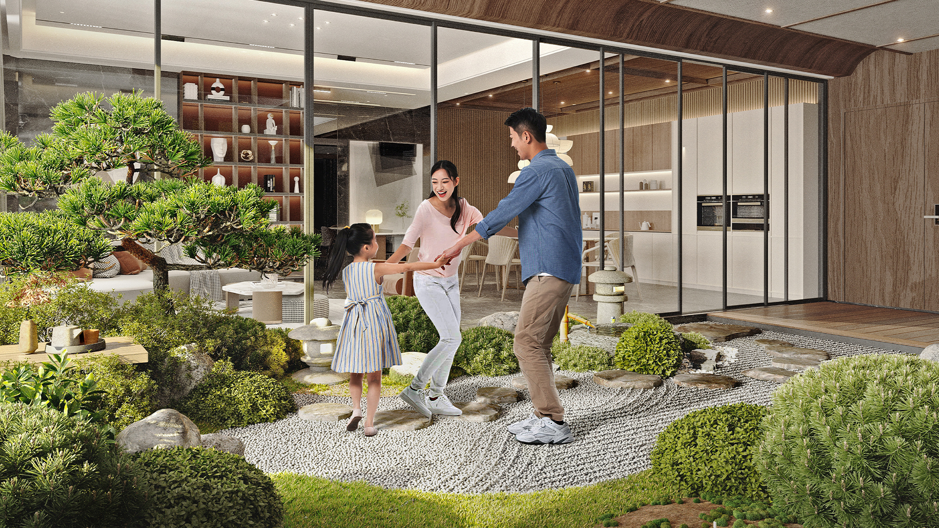 Công viên nội khu tại IKI Village không chỉ là nơi tạo cảnh quan mà còn được thiết kế để phục vụ nhiều mục đích khác nhau. Cư dân có thể tản bộ thư giãn sau giờ làm việc, tập thể dục nhẹ nhàng vào buổi sáng hoặc dành thời gian vui chơi cùng gia đình vào cuối tuần. Việc tích hợp nhiều công năng trong cùng một không gian giúp tăng tính linh hoạt và khả năng sử dụng liên tục của tiện ích, phù hợp với nhịp sống đa dạng của các nhóm cư dân.
